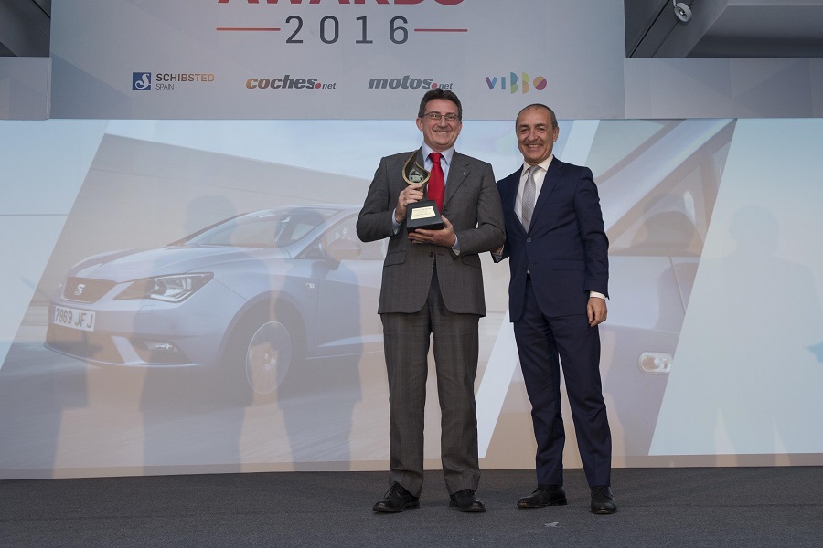 El SEAT Ibiza ha sido ha sido distinguido como “Mejor Auto Urbano 2016”, otorgado por los usuarios del sitio web especializado www.coches.net, un galardón que confirma el atractivo del modelo español, líder ininterrumpido de su segmento en España desde el año 2001. El director de Marketing de SEAT España, Gabriele Palma, ha sido el encargado de recoger el premio en un acto celebrado en el Hipódromo de la Zarzuela de Madrid.