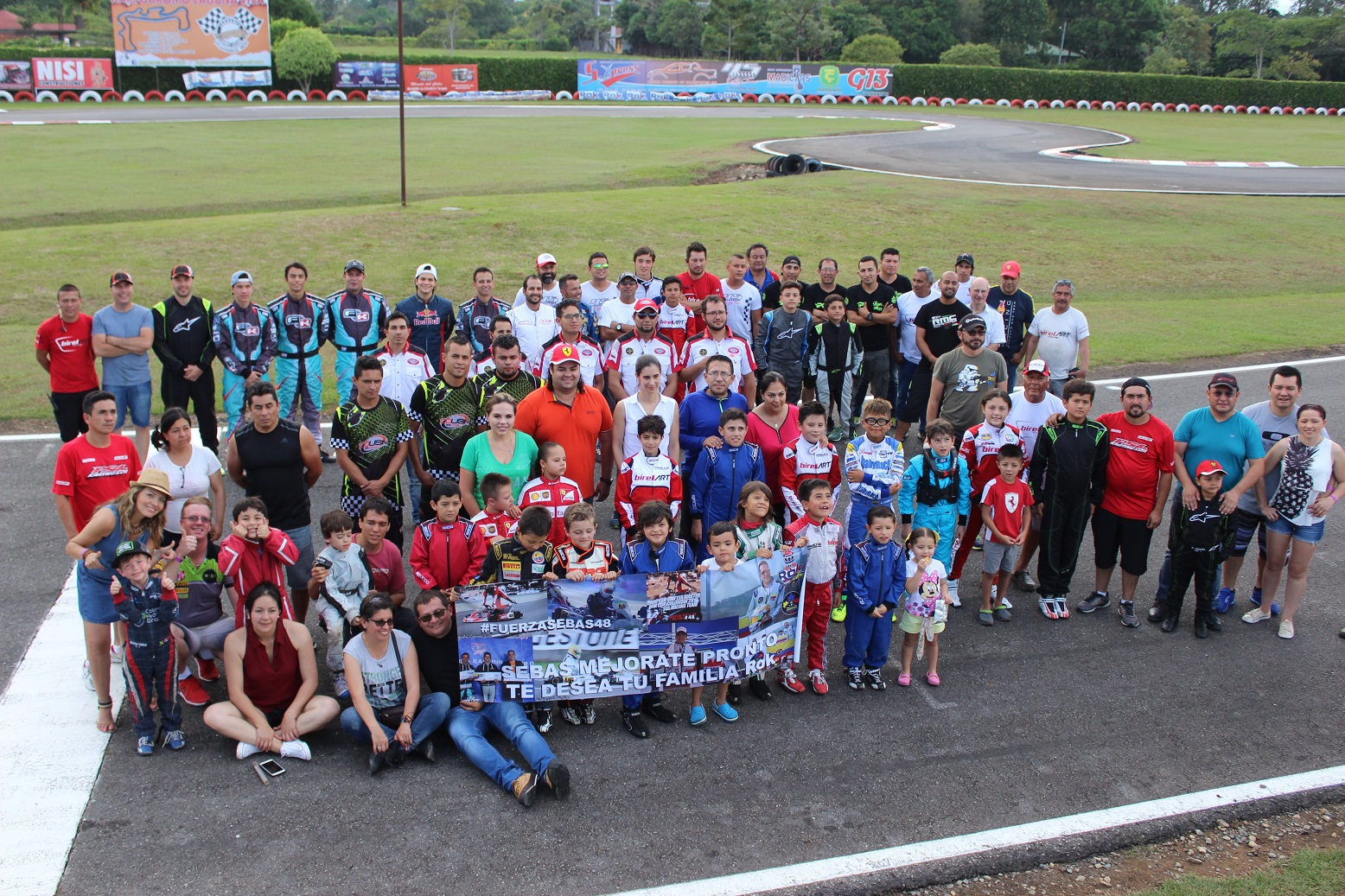 Un emotivo homenaje brindaron todos los participantes al piloto Sebastián Meza, quien se recupera de un duro accidente.